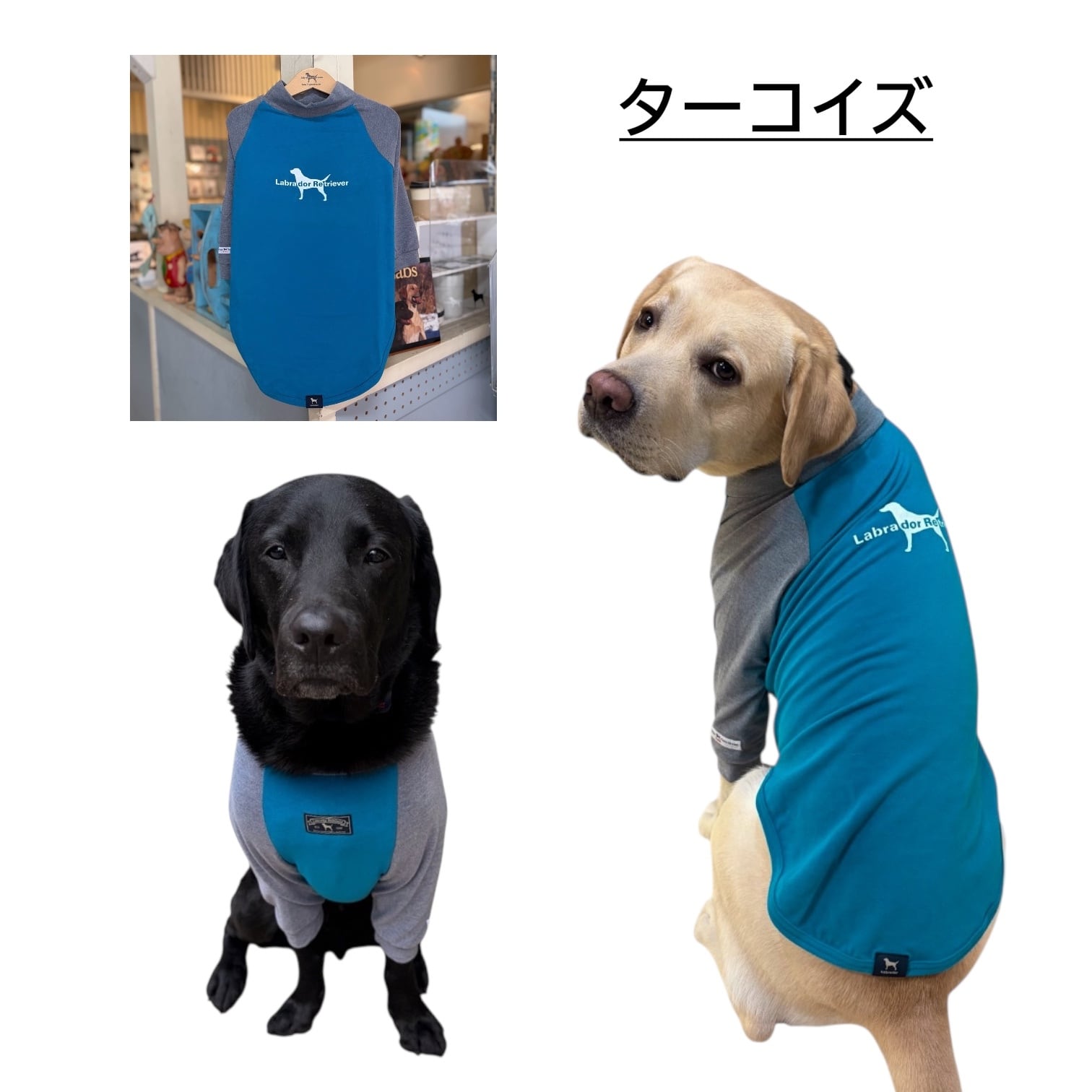 ボディ:ターコイズ 袖・襟:グレー